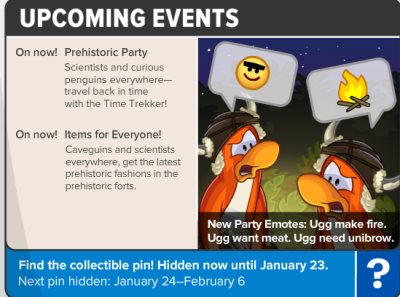 On now! Items for Everyone! Caveguins and scientists everywhere, get the latest prehistoric fashions in the prehistoric forts